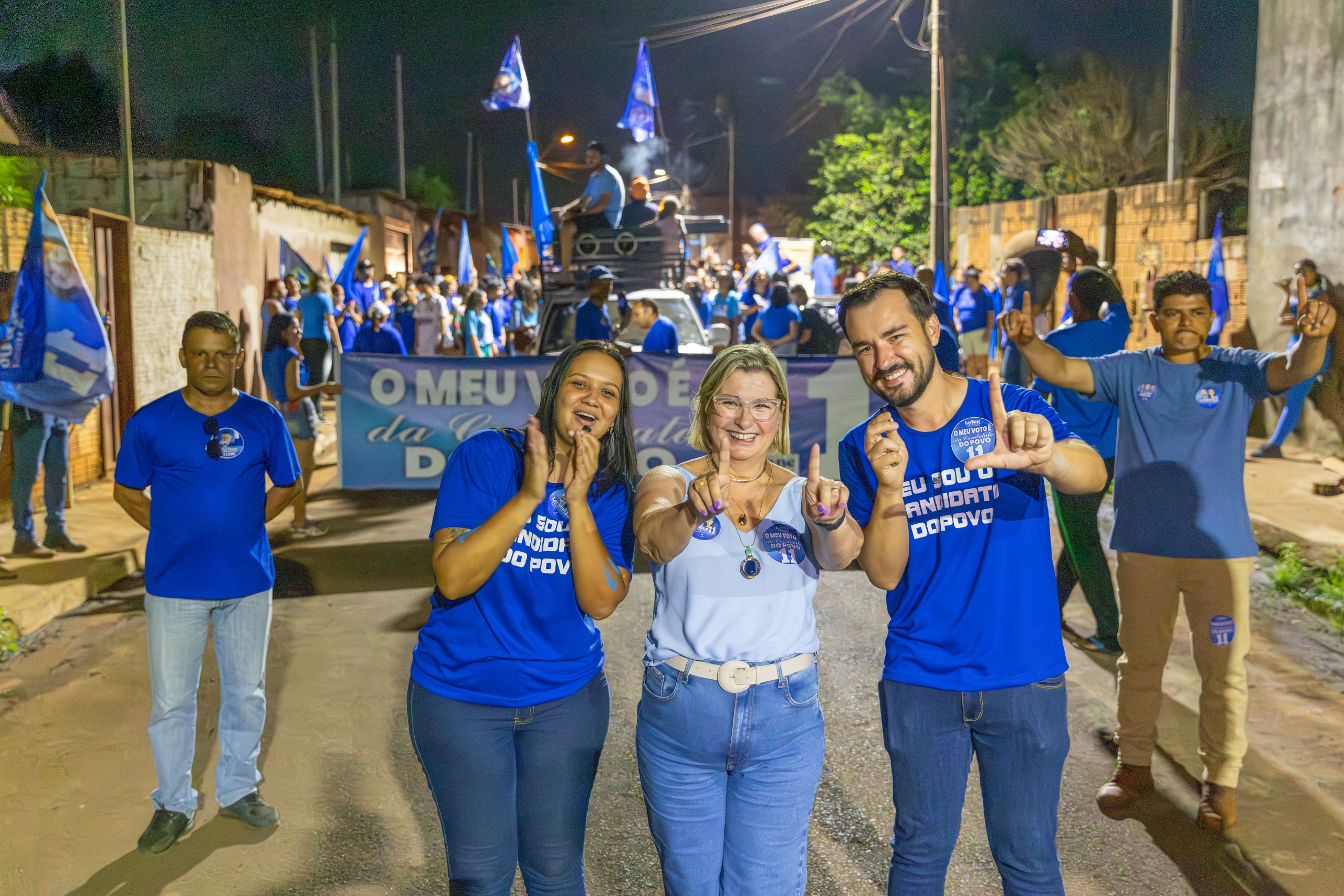 Com um verdadeiro mar azul tomando conta das ruas da cidade, Ana Paula participou da mobilização ao lado de Leriane e Luisinho, dos ex-prefeitos Jorge e Lauzita, dos candidatos a vereador, de lideranças locais e de centenas de apoiadores. Em seguida, todos caminharam juntos pelo bairro Bela Vista.
