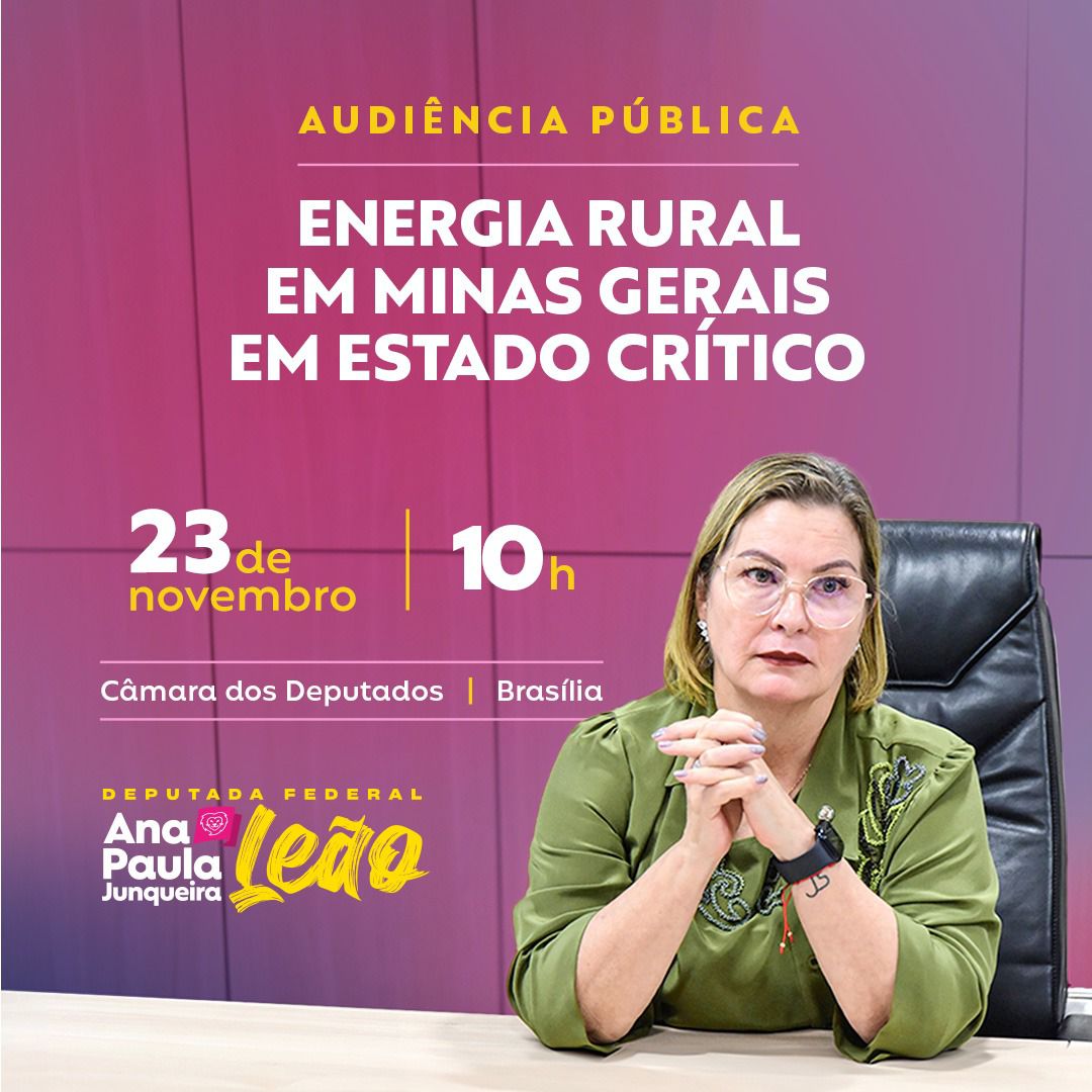 As constantes quedas de energias e o desrespeito da Companhia Energética de Minas Gerais (CEMIG) com a população mineira serão os assuntos da audiência pública solicitada pela deputada federal Ana Paula Leão (PP-MG), através do requerimento nº 23/2023, junto a Comissão de Agricultura, Pecuária, Abastecimento e Desenvolvimento Rural (CAPADR) da Câmara dos Deputados.