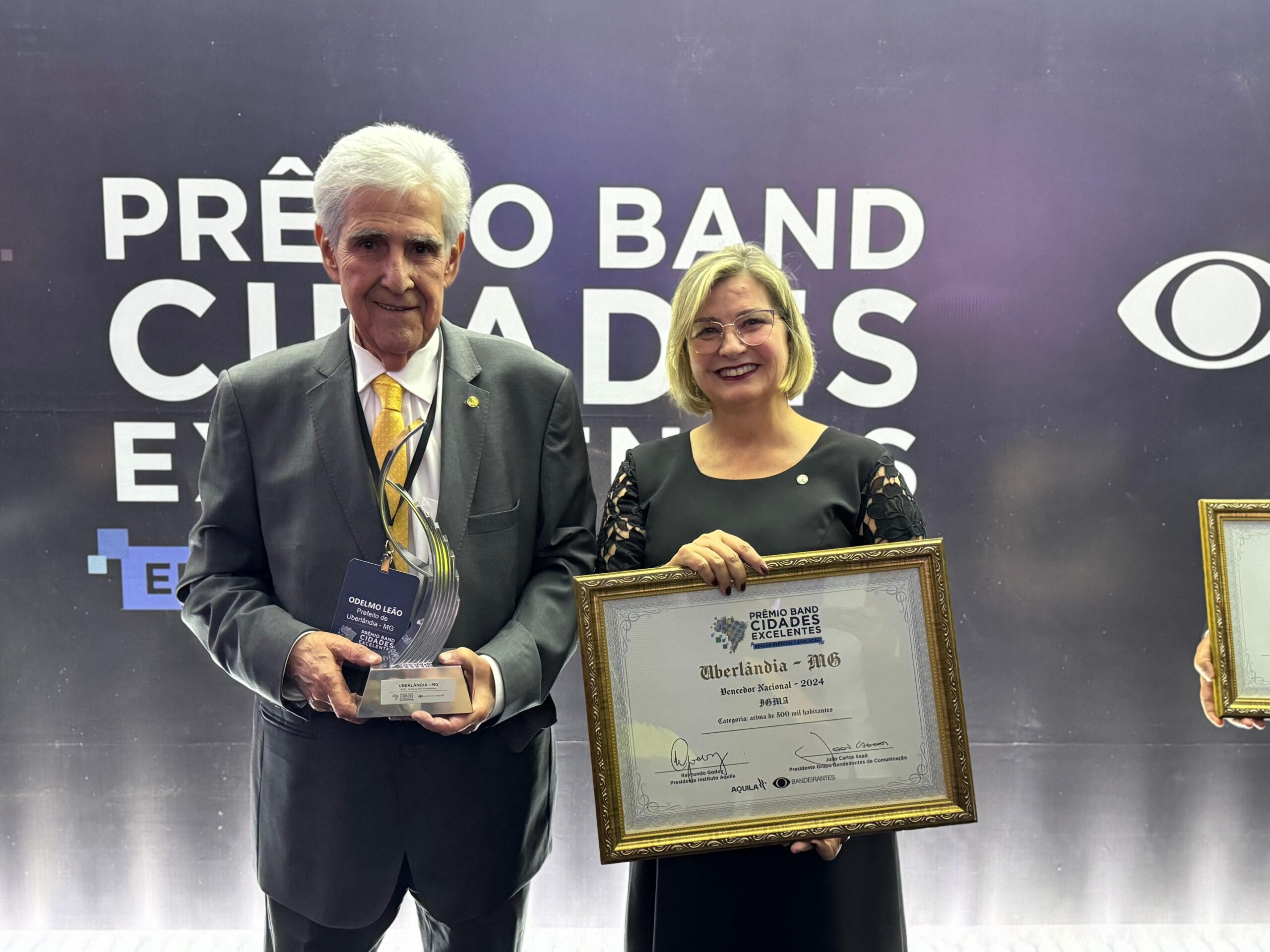 O resultado de um trabalho sério, comprometido e de muita dedicação não poderia ser diferente: pelo segundo ano consecutivo, Uberlândia foi reconhecida como o melhor município do país na etapa nacional do Prêmio Band Cidades Excelentes 2024. A cerimônia aconteceu na noite desta segunda-feira (1°) no Centro Cultural Banco do Brasil, em Brasília, e contou com a presença da deputada federal Ana Paula Leão (PP-MG), que acompanhou o prefeito Odelmo Leão.